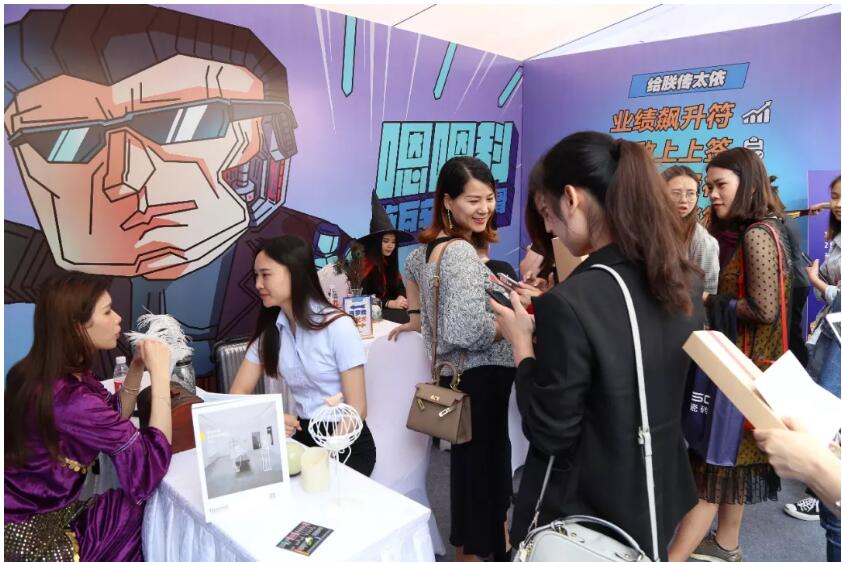 像【罩杯升級符】這種符有十幾種,無論抽到哪一張都能讓你捧腹大笑,整個活動現場,從設計、文案、物料、布置、人員的安排,無不體現著依諾對待這件事情的認真程度,處處可見小亮點,讓人心頭一顫或是開懷大笑。