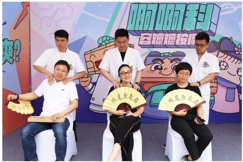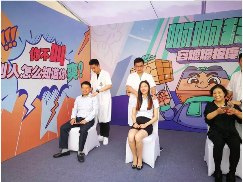 下一站的啊啊科就膩害了,依諾專門從醫院請來專業的按摩師傅,還是比較帥的那種,為每一位參與者按摩,強勁的力道、熟練的手法、點對點的舒服體驗,現場響起一遍又一遍舒服的喊叫。