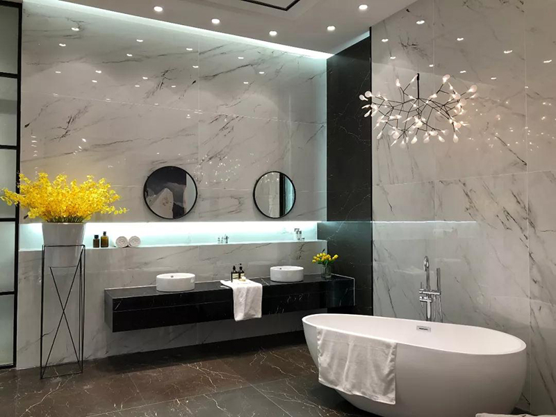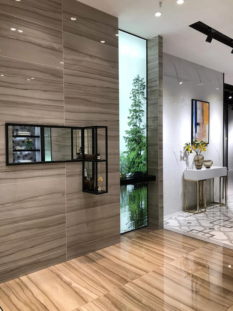 溫州依諾旗艦店,位于溫州甌海區(qū)紅星國際家居廣場,面積約1500㎡。設計師選用天然大理石紋理、灰色系水泥磚等天然美感的產(chǎn)品作為主材,同時搭配工業(yè)美感的產(chǎn)品進行深入融合,營造出輕奢不俗的別致空間,既讓人有似曾相識的親近感,又賦予令人驚喜的現(xiàn)代感和時尚感。