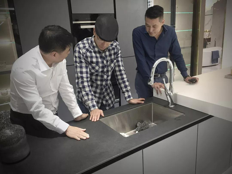 昨天,我們有幸在依諾瓷磚展廳邂逅了【12道鋒味】的主廚Wilson,作為見慣了世界頂級操作臺的大廚,連他都對依諾瓷磚的【全瓷】櫥柜做工贊不絕口。