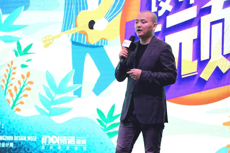 在【設(shè)計(jì)大頑家】的啟動(dòng)儀式上,廣州設(shè)計(jì)周執(zhí)行總監(jiān)賀文廣作為代表發(fā)表講話。