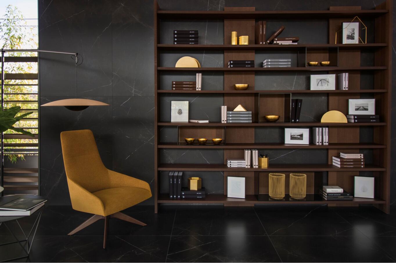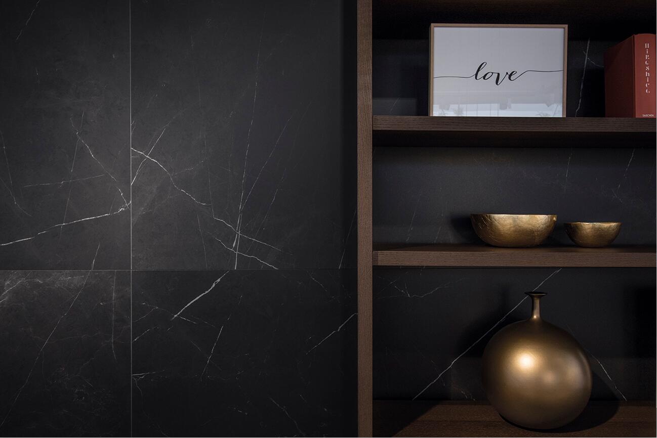「佛羅倫薩黑」900×1800mm的是依諾LINK系列連紋大板瓷磚,超大規(guī)格完整呈現(xiàn)出天然石材的肌理,清晰而富有層次感、張揚大氣,鋪貼于大型空間,能展現(xiàn)更震撼的視覺效果。