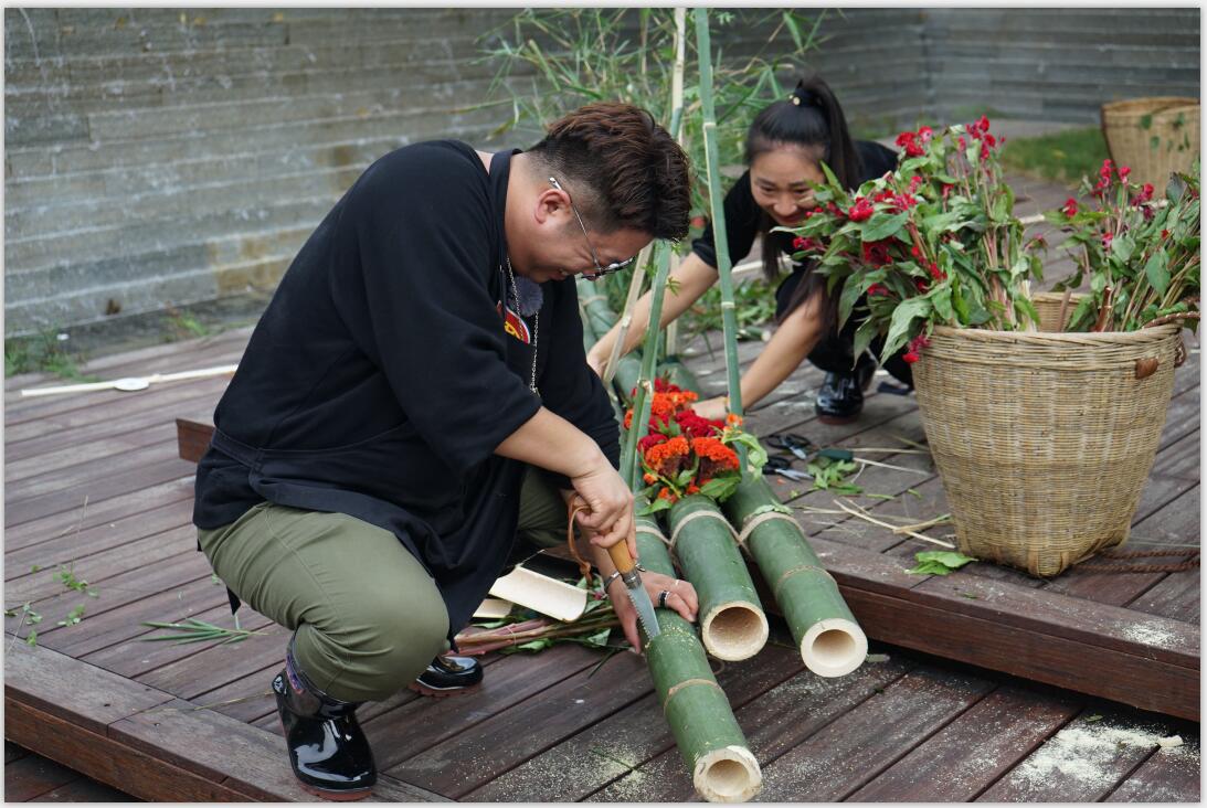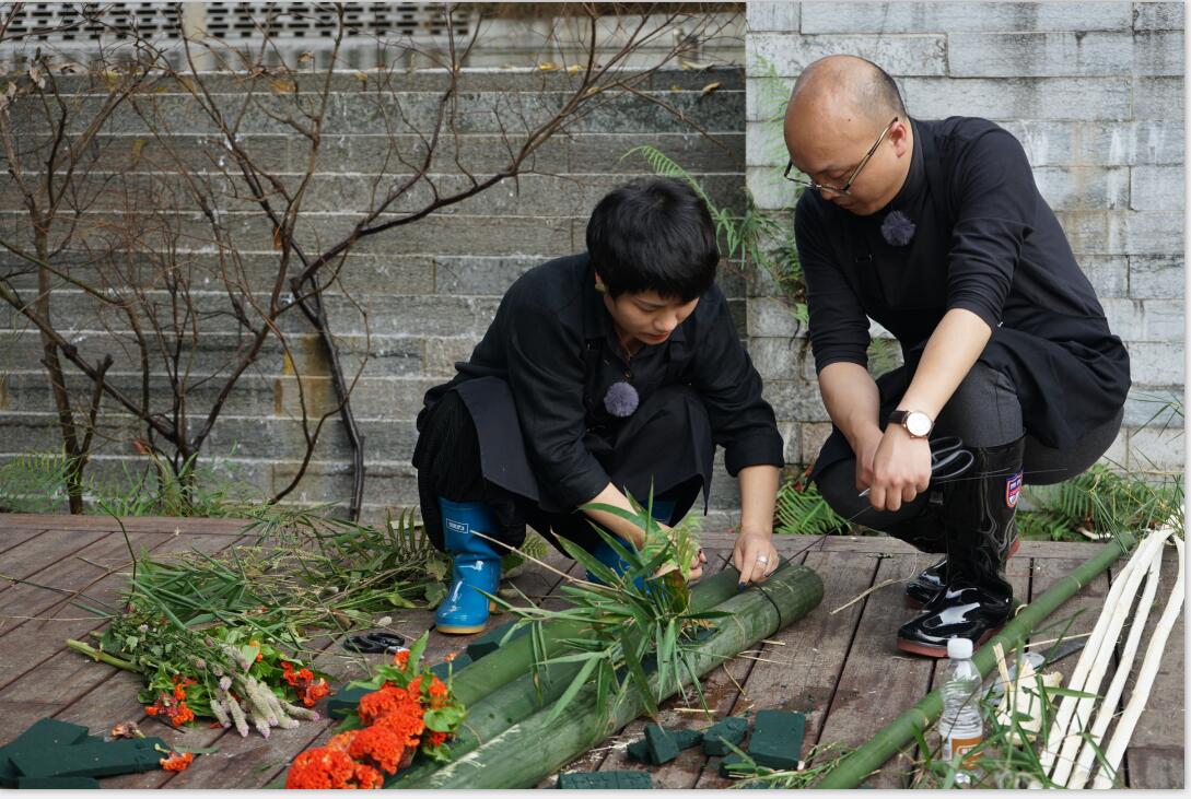 在凌宗涌老師的指引下,體驗官們進行了花藝制作的嘗試,順利打造出創(chuàng)意十足的團隊作品和專屬的個人作品。