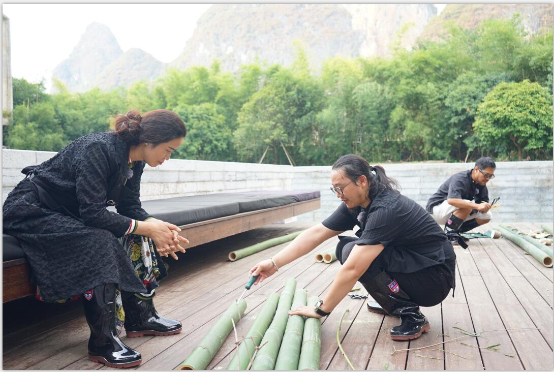 凌宗湧老師首先帶領依諾設計師體驗官們參觀了陽朔糖舍 ALILA 酒店,介紹了他在其中的花藝創(chuàng)作理念。