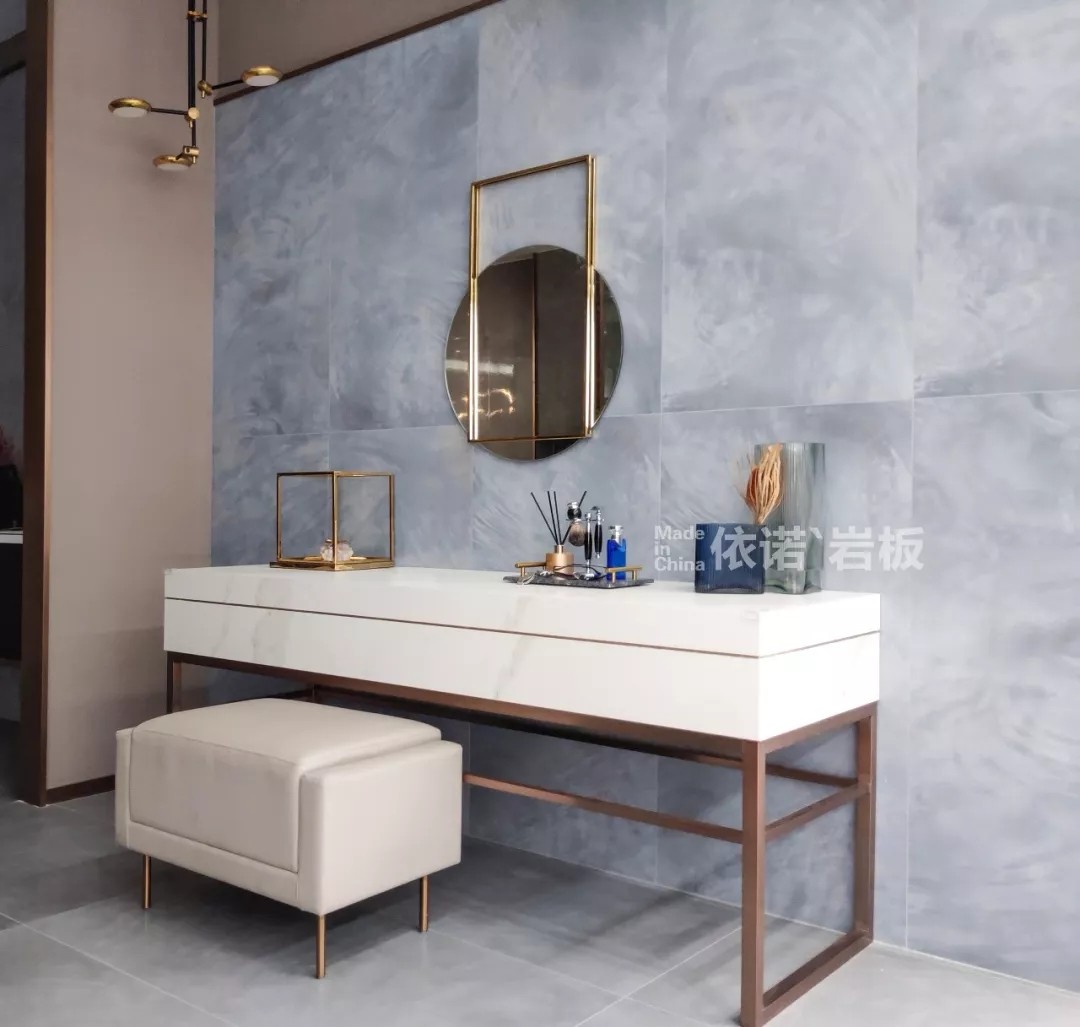 杜總還帶來了由依諾自主設(shè)計(jì)與研發(fā)的新國(guó)貨【依諾巖板】,帶來材料應(yīng)用的全新靈感。【依諾巖板】物理性能強(qiáng)悍,突破了墻地裝飾材料的使用局限,可作為【板材】應(yīng)用,高顏值,無甲醛,更健康,拒絕生物污染,同時(shí)具有抗沖擊、耐刮磨、不吸污、耐高溫、耐酸堿、易清潔等卓越性能,能夠?yàn)椴煌臻g提供多種定制方案。