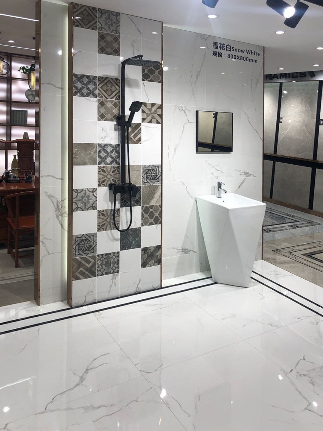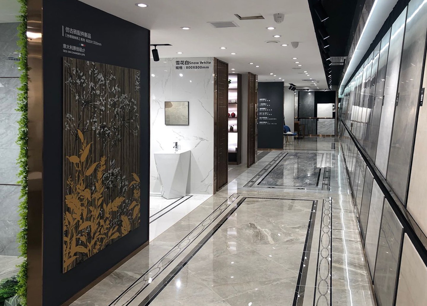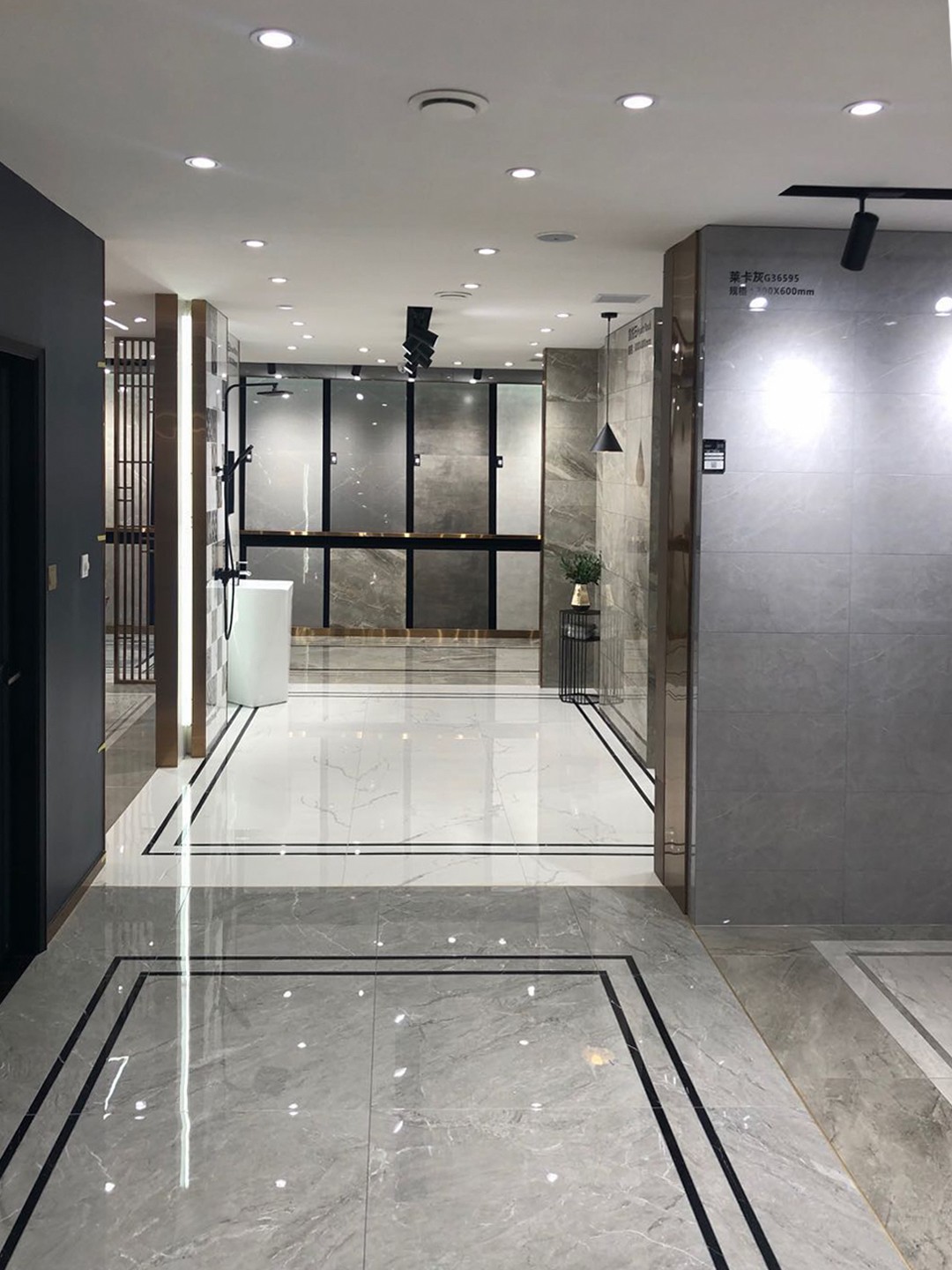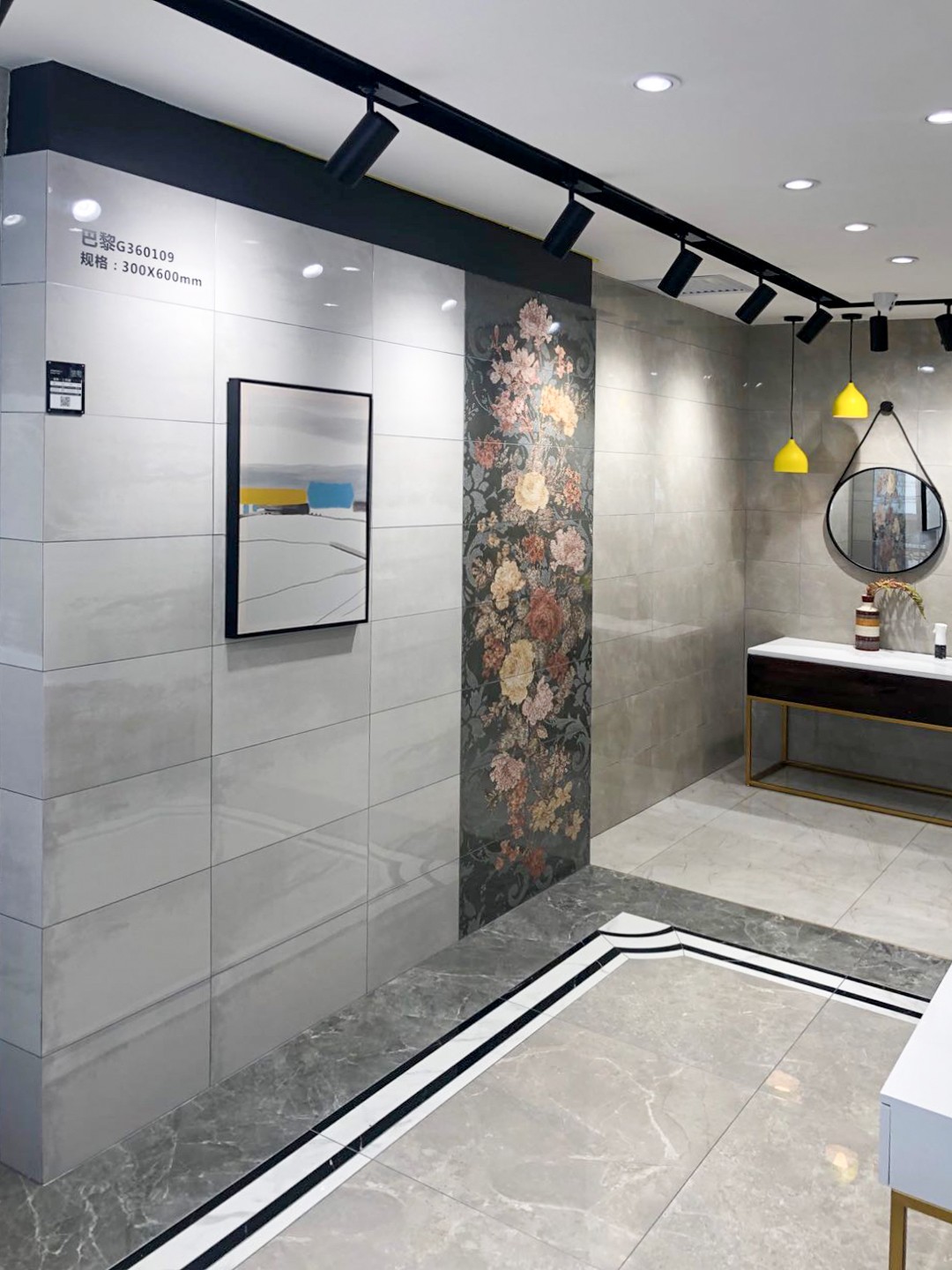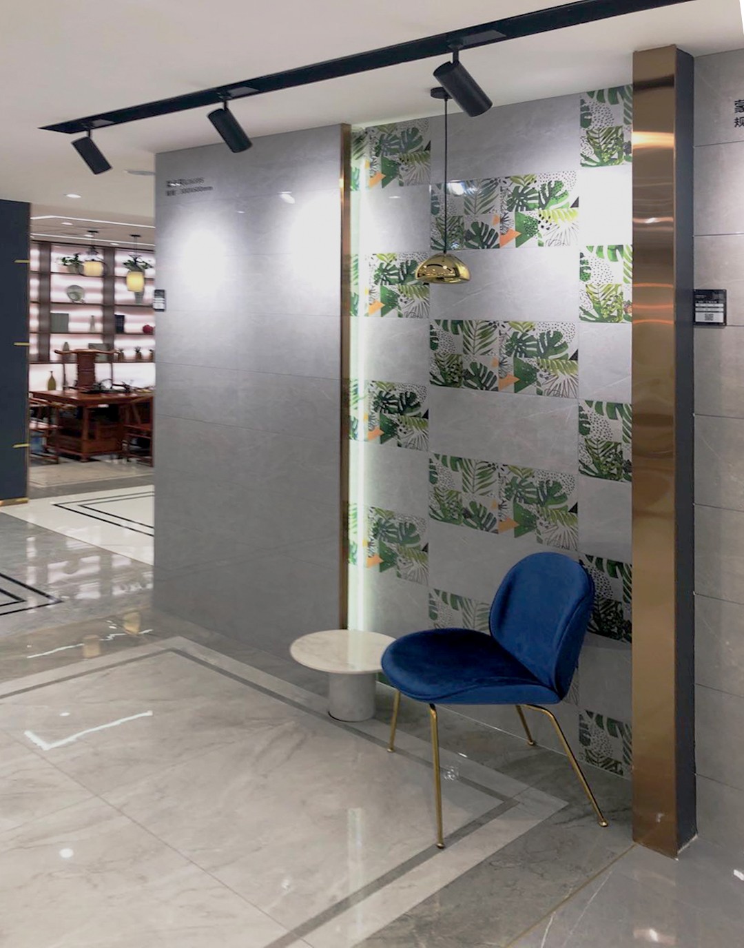 舍棄過多的裝飾造型,店內(nèi)多款瓷磚產(chǎn)品通過“主磚+花磚”搭配的方式展示,既可豐富視角層次,又能讓顧客了解產(chǎn)品真實的搭配應(yīng)用效果,更便于選購。