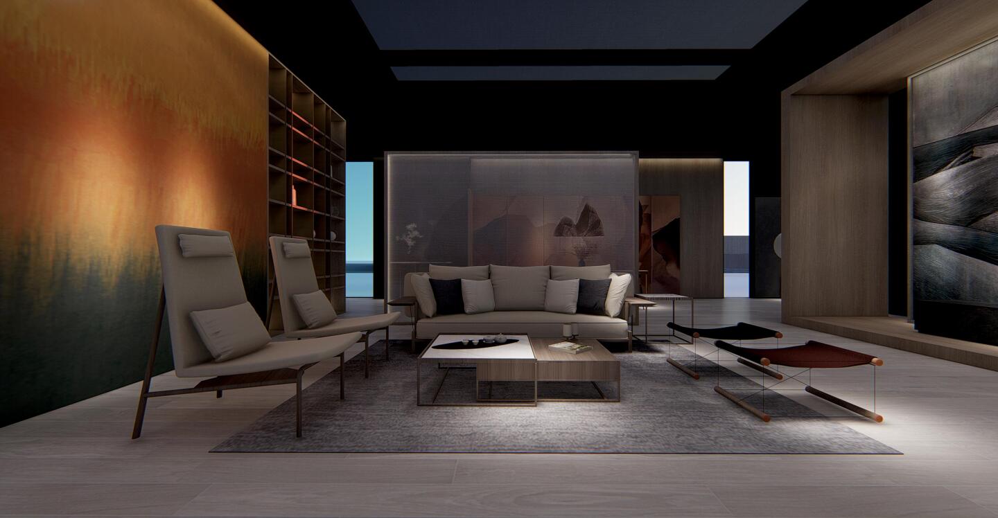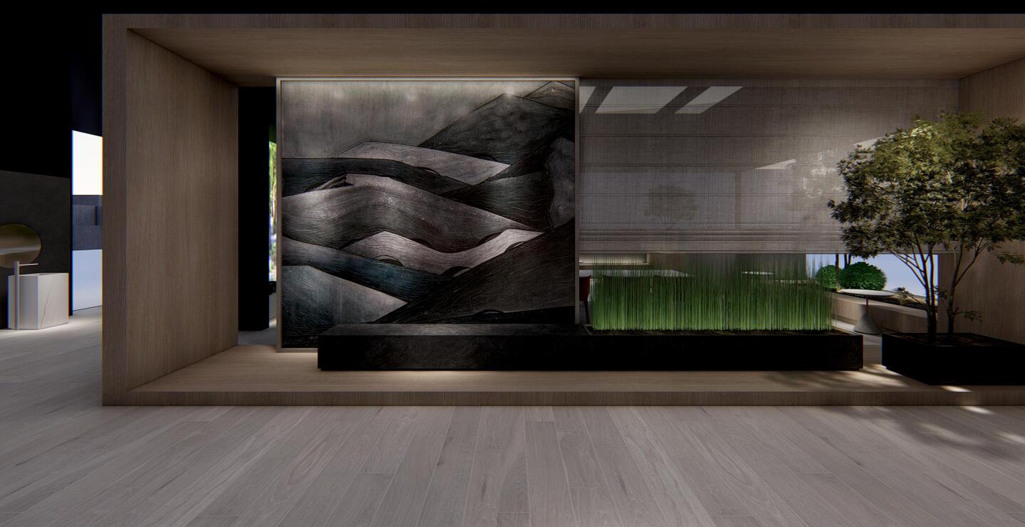 空間的本質在于人與之間的互動性,依諾瓷磚展位采用半圍合的設計,消除空間給人帶來的拘束感,讓觀眾在其中自由穿行。同時延展了空間的廣度,與依諾巖板「無限可能」的理念相契合。