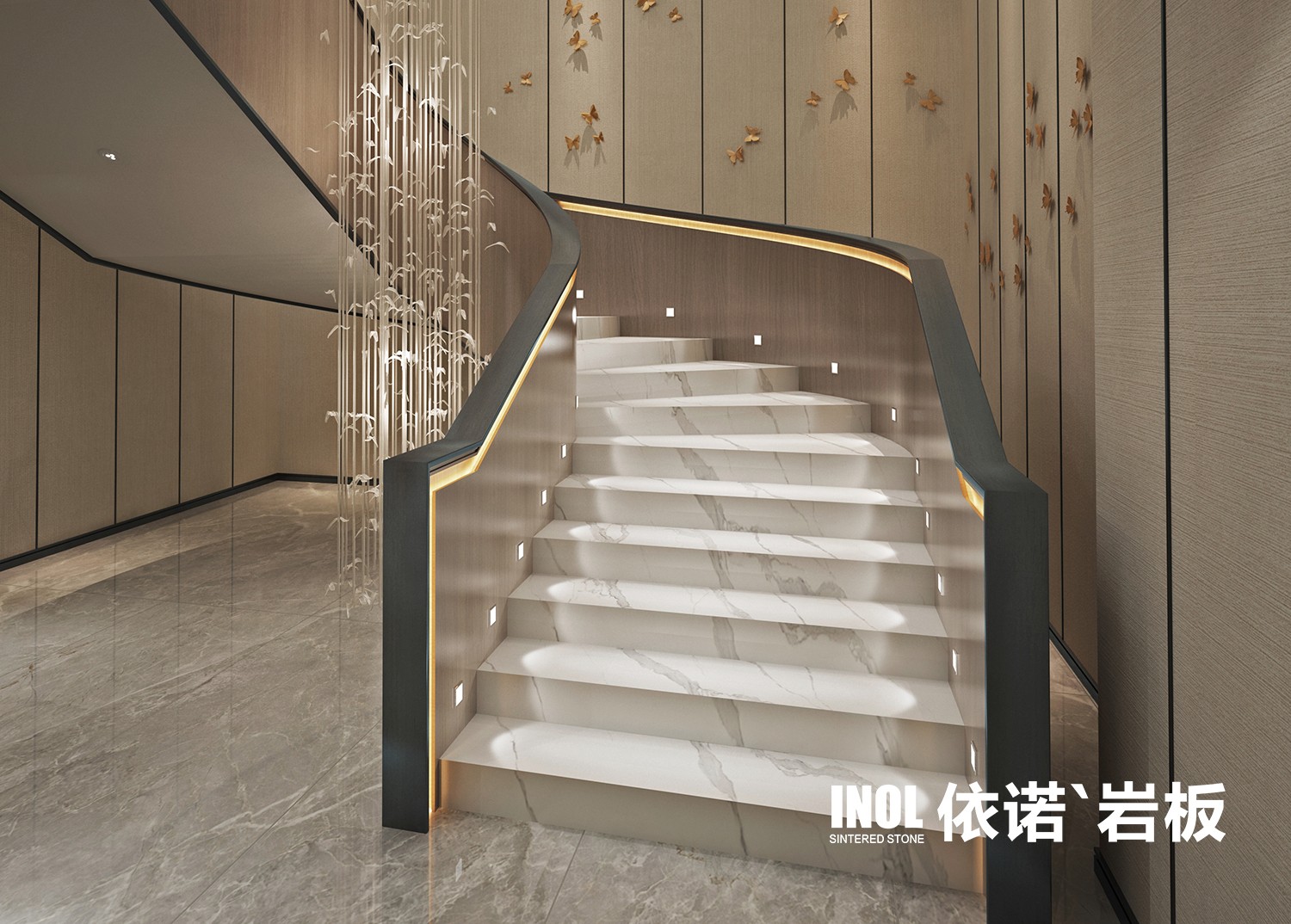 除了【一片到頂】,依諾還為現場觀眾帶來了巖板的N種應用:背景墻、臺面、樓梯、柜體、裝飾物件等。
