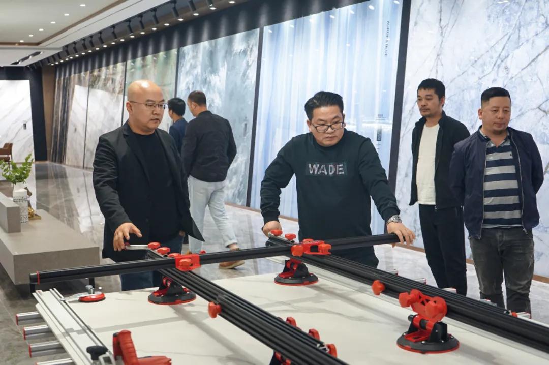 「湛江新銳設計師精英」團隊和「山東裝飾協會」會員一行到訪依諾巖板|瓷磚佛山總部展廳參觀交流,依諾巖板 瓷磚渠道總監孫明浩和相關工作人員熱情接待了他們,并為他們進行了講解。