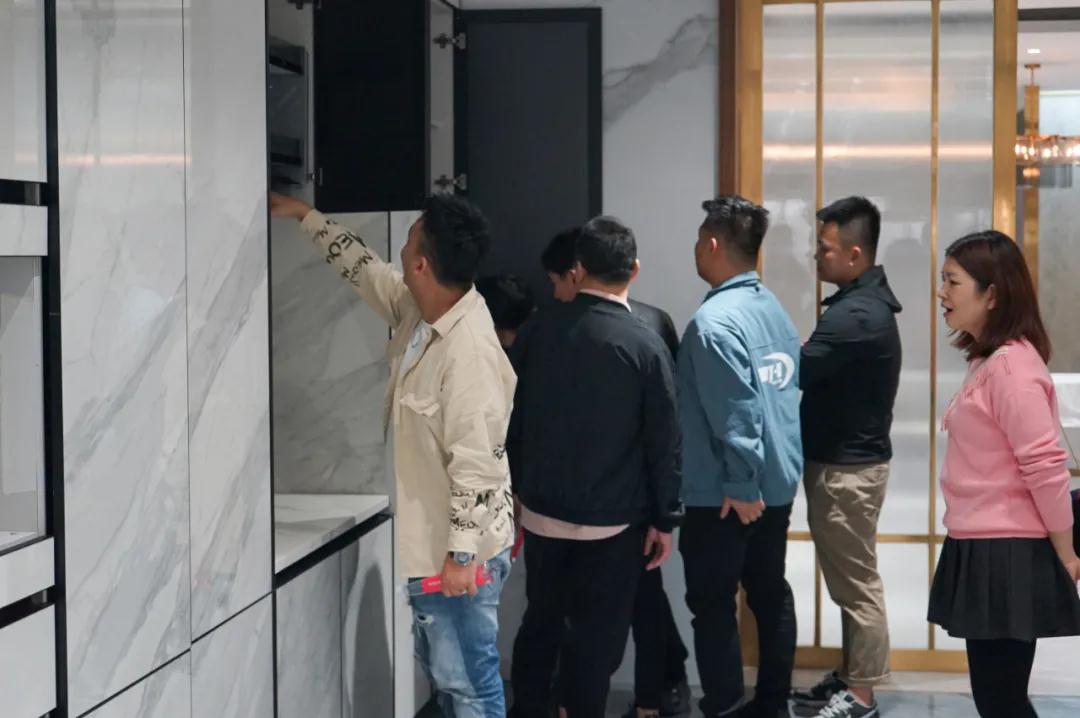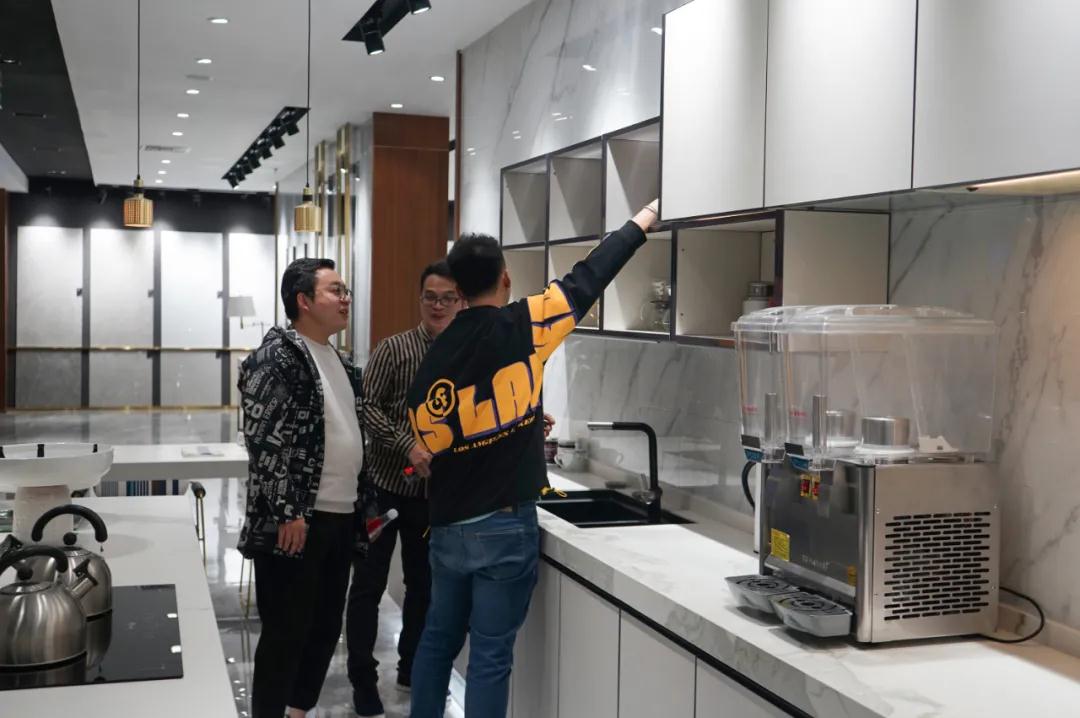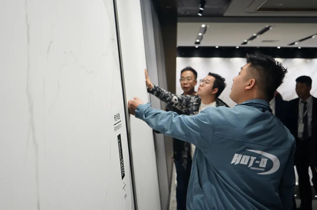 參觀過程中,設計師們重點考察了依諾巖板產品和相關定制應用。依諾巖板性能強悍,有著豐富多樣的表面效果,質感強烈;產品花色豐富,均采用意大利原創設計,從大理石到奢石,從基礎色到時尚色,從不同維度,提升產品顏值,吸引他們駐足品味。