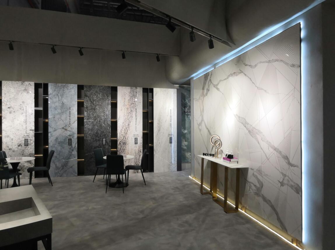 依諾巖板展館外,簡約而大氣,展內展外,各有千秋。