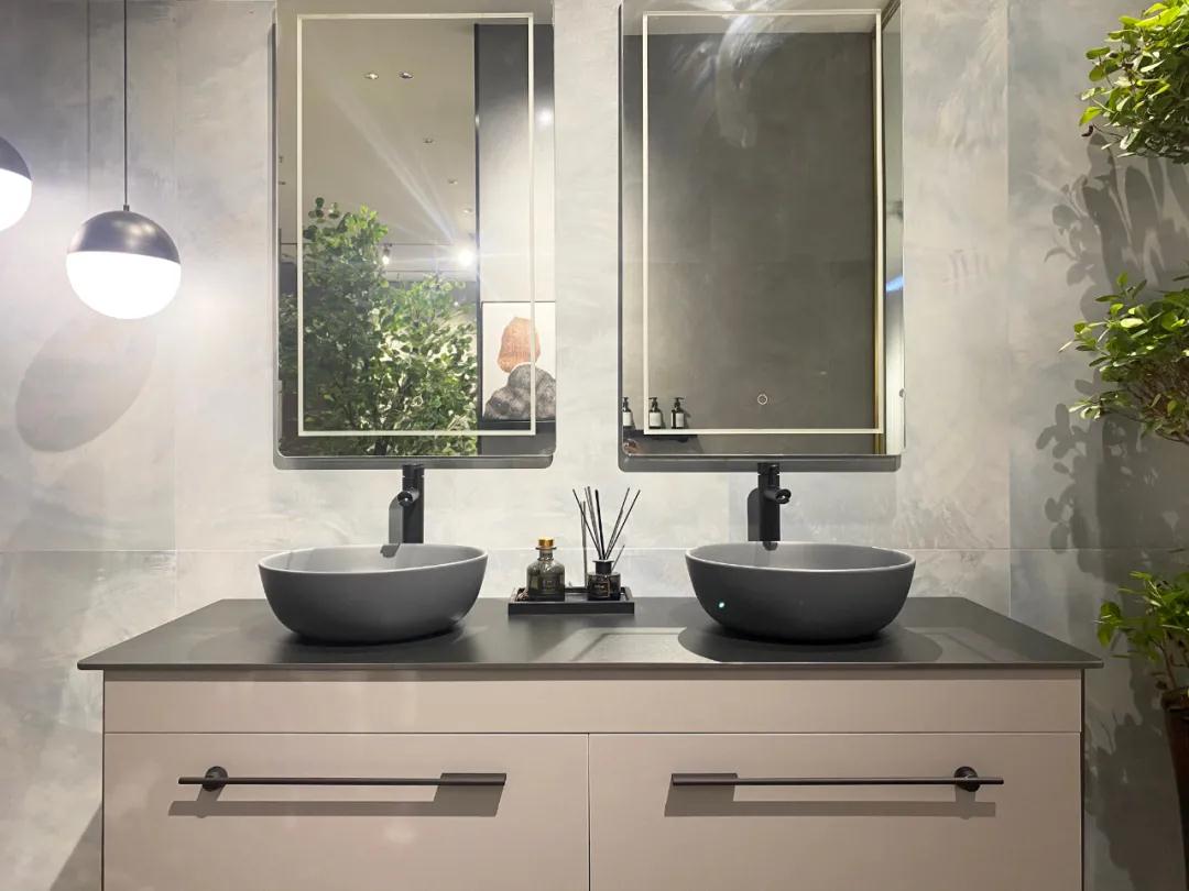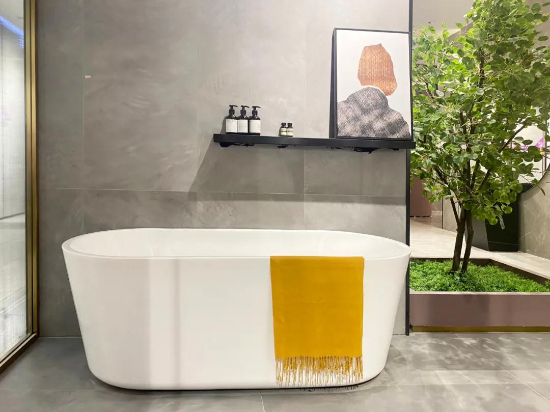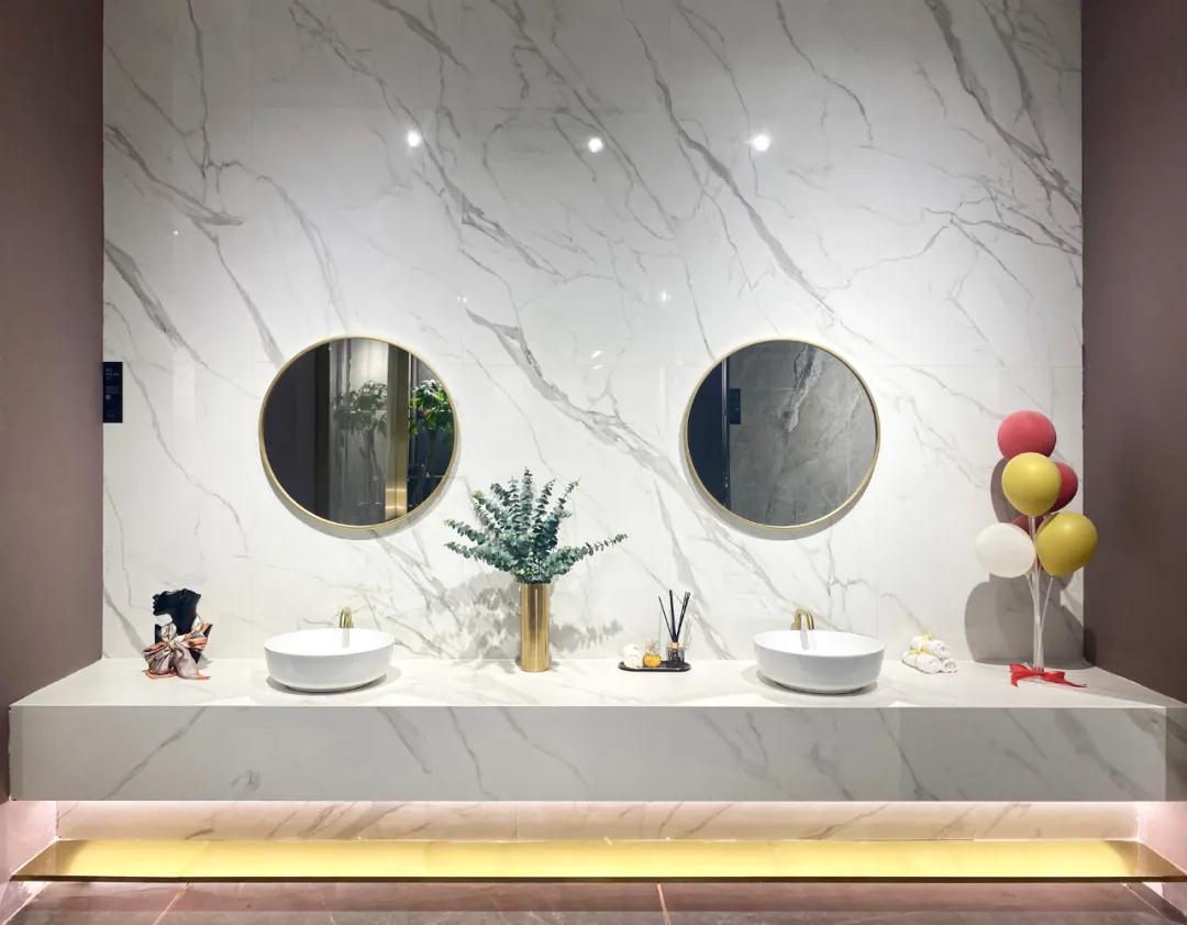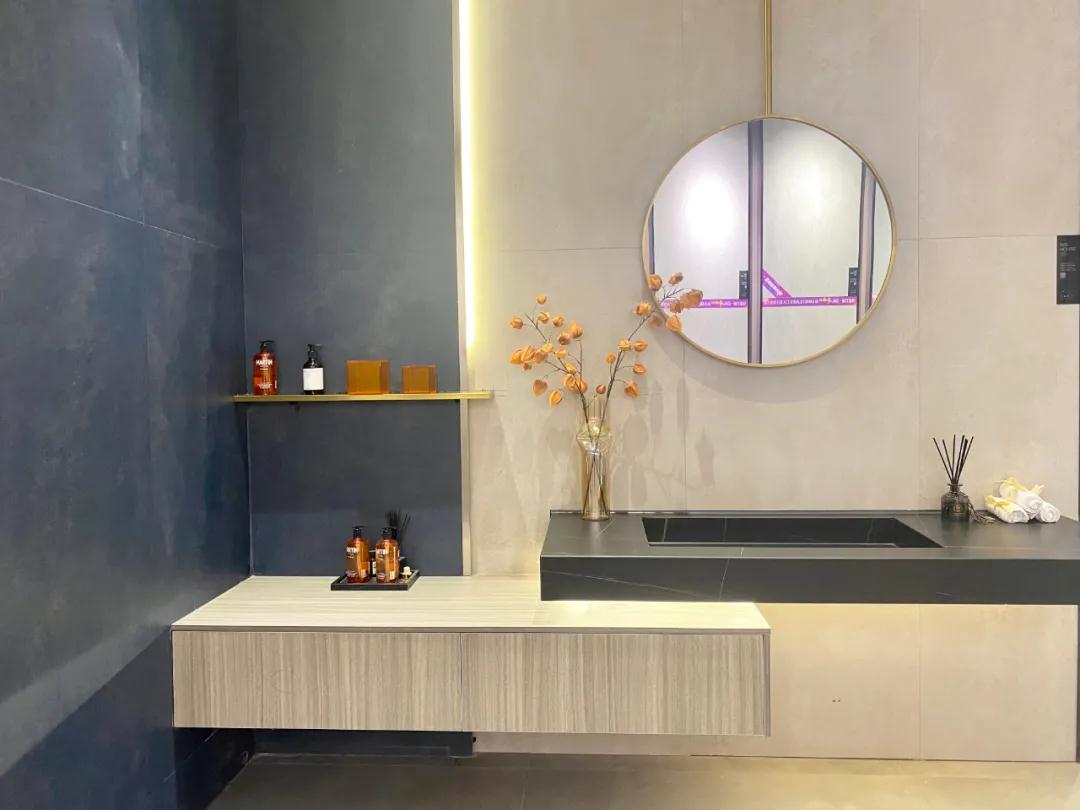 除了上墻下地,還有以依諾巖板品牌定制的茶幾、餐桌、浴室柜、洗漱臺等融合其中,綜合展示出巖板的家居應用可能,為用戶們提供了豐富的參考。