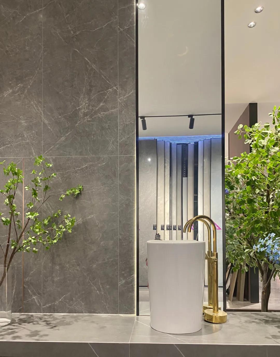 整體空間的設計語言是簡潔精煉的,充分凸顯出依諾巖板產品的優勢;輔以精選的高品質瓷磚,點綴強調個性和藝術氣質的軟裝,搭配起來極具輕奢范兒。既規整明快,又富有細節,令人回味無窮。