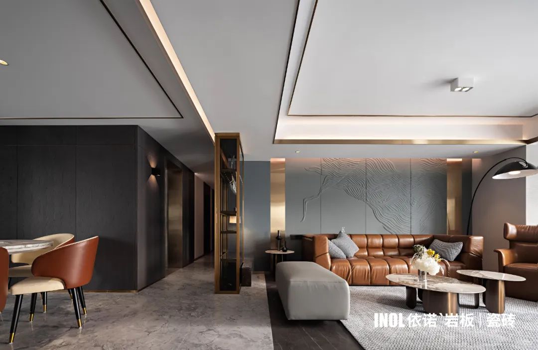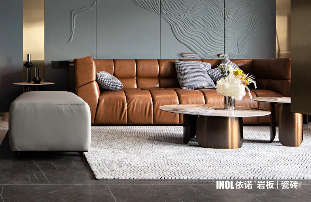 本期依諾巖板瓷磚【老友記】,正是以材質的有效組合,為空間帶來恰到好處的奢美與精致。