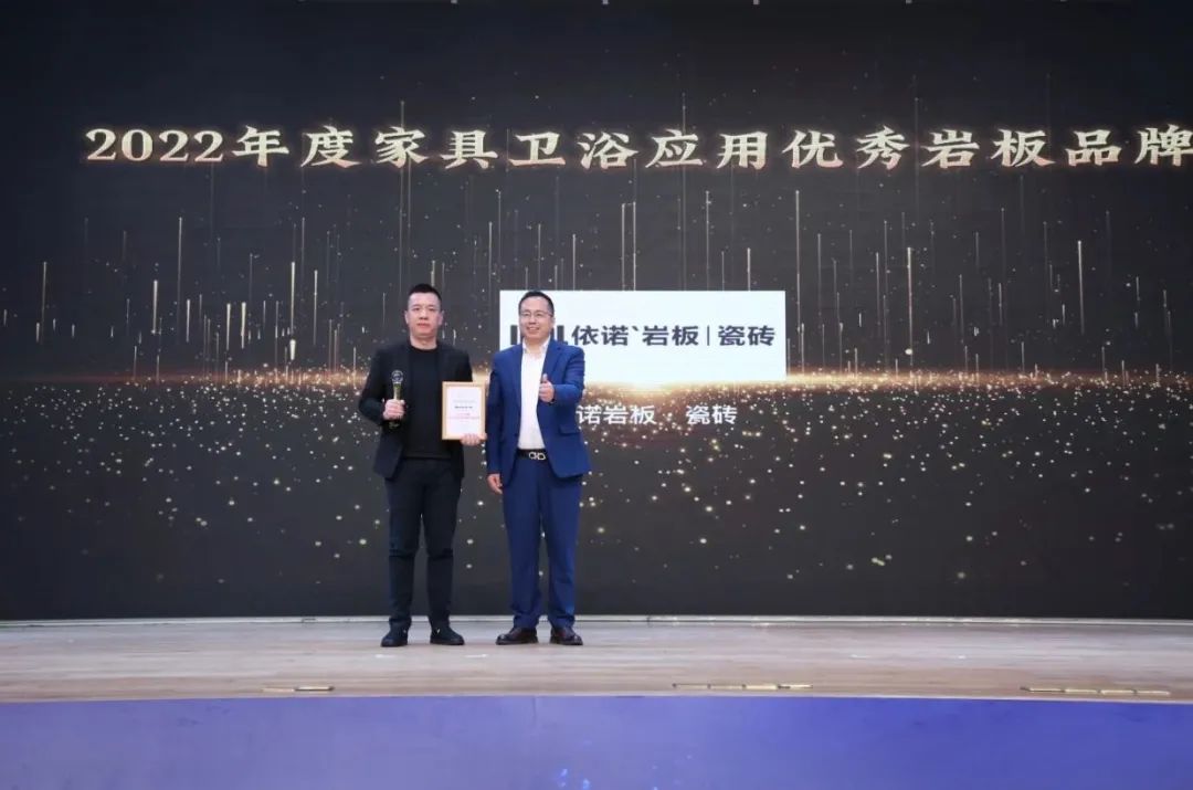 活動上,依諾巖板品牌憑借強大的綜合實力和出眾的表現,通過大獎組委會的嚴格評審,攬獲“家具衛浴應用優秀巖板品牌”殊榮。