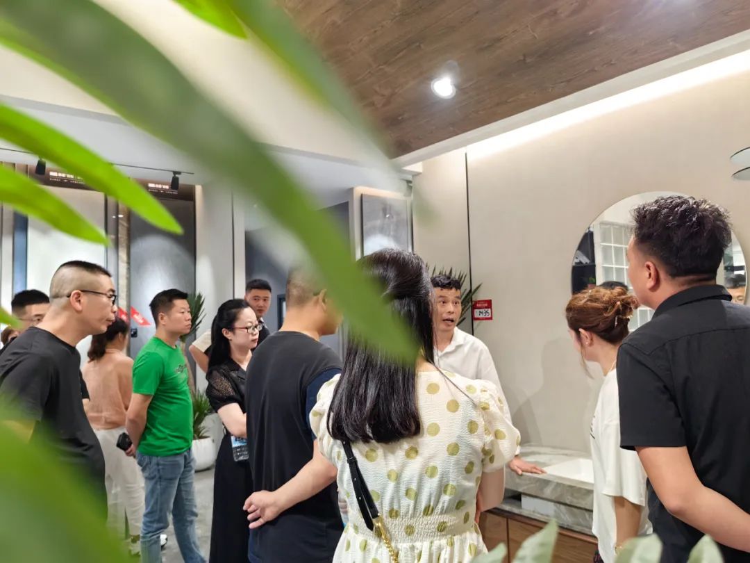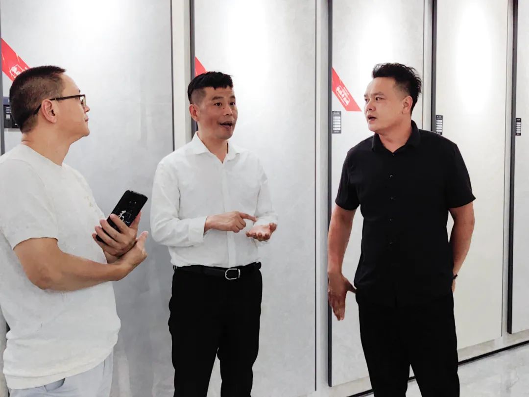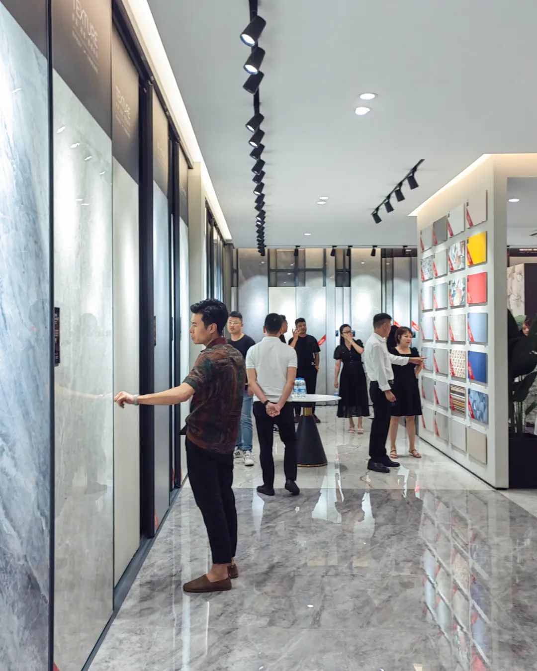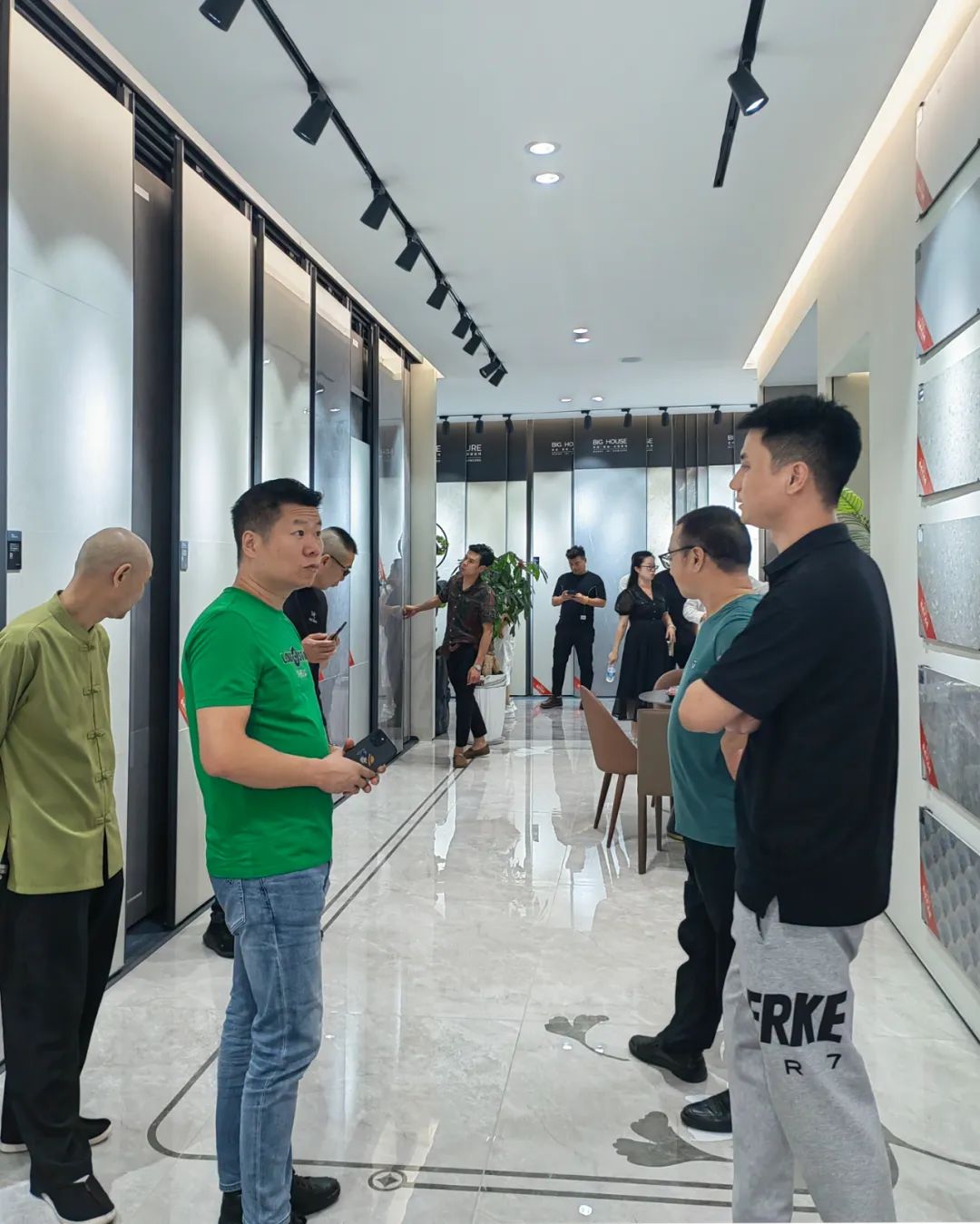 除了參與專題培訓(xùn)及互動交流,福建區(qū)經(jīng)銷商及銷售負(fù)責(zé)人一行還走進依諾巖板瓷磚·長汀旗艦店參觀交流。