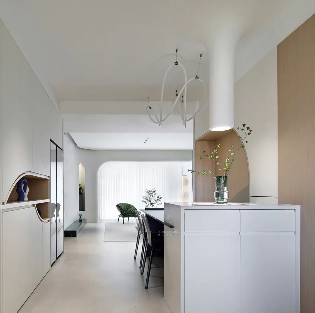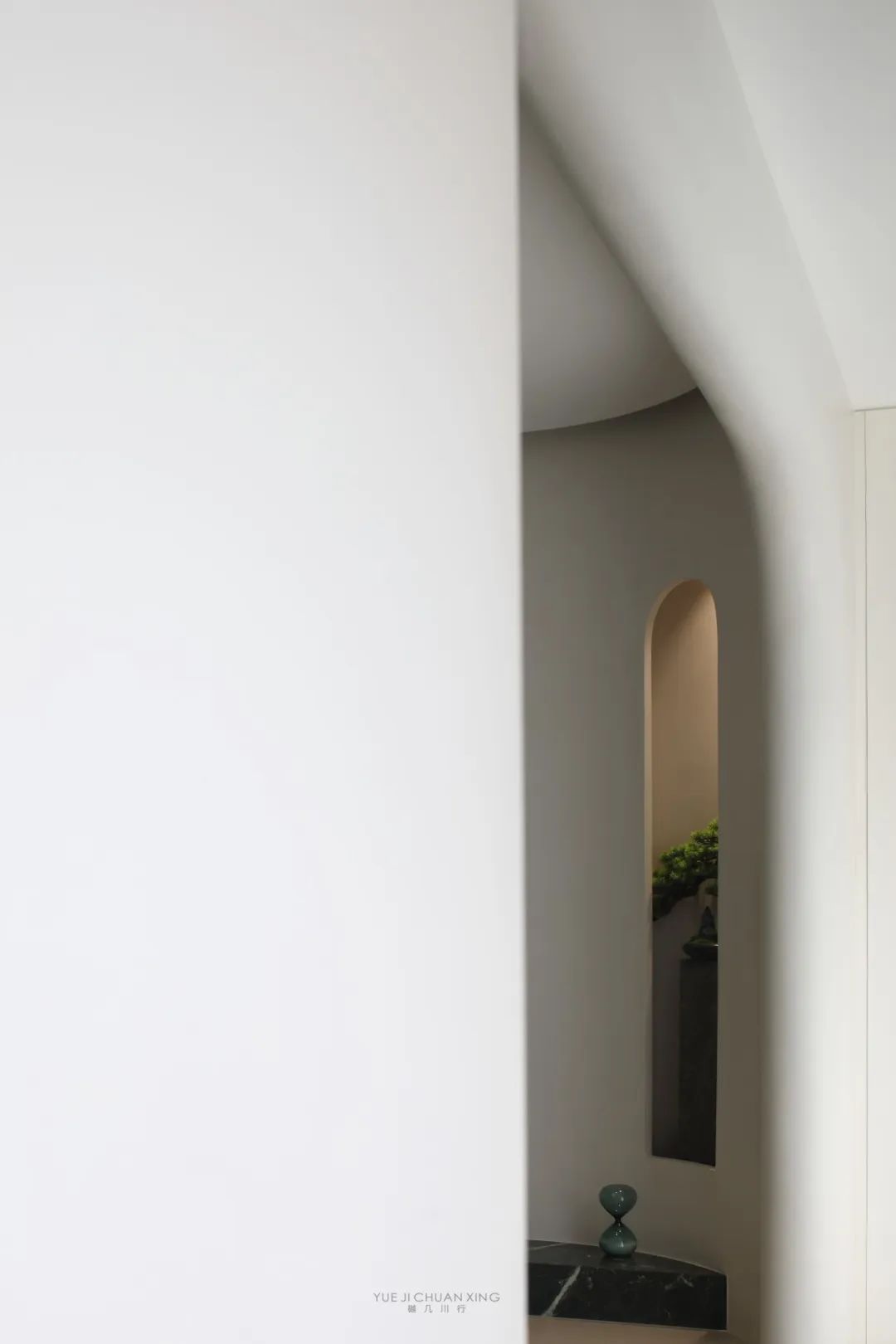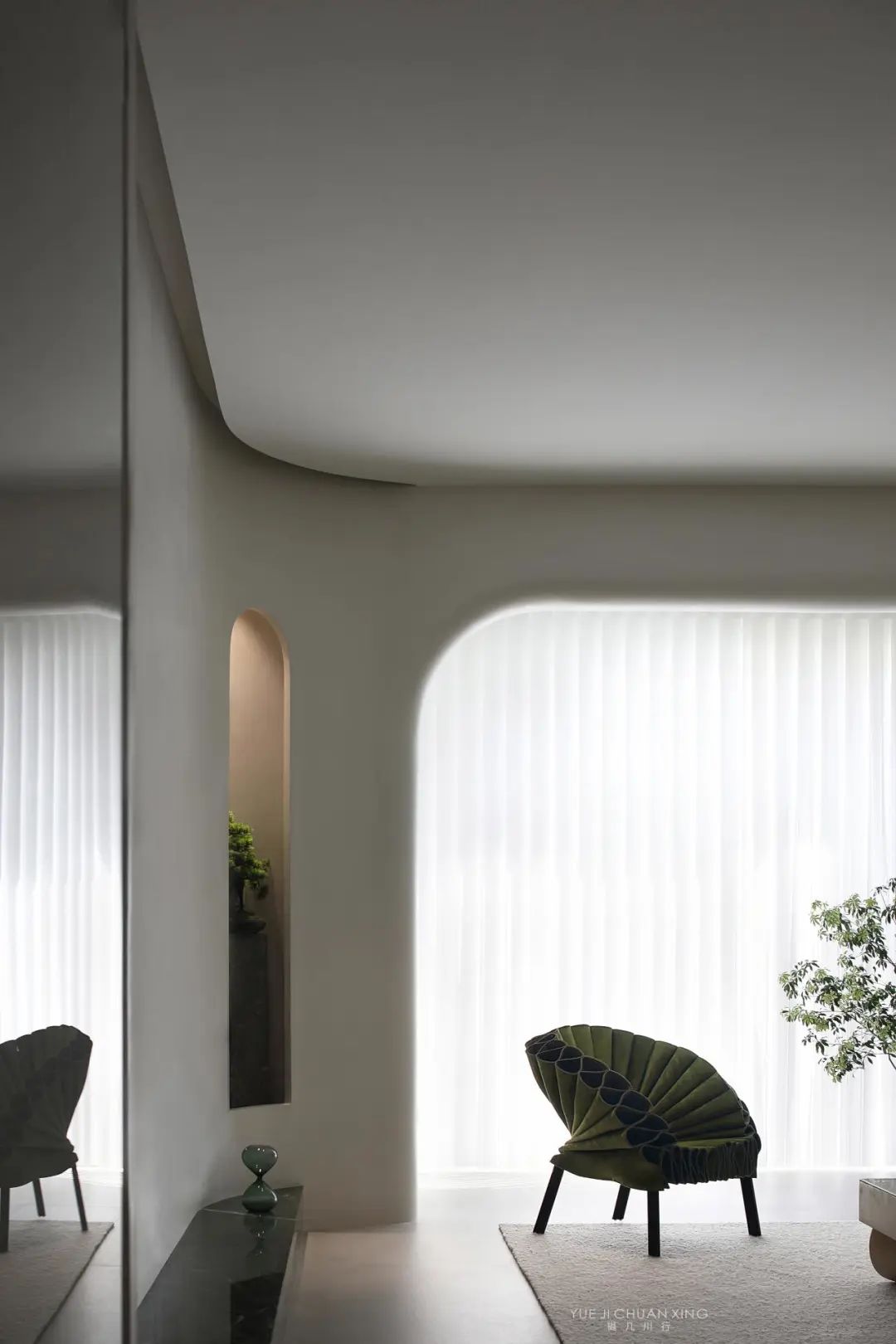 弧線經過肆意演變,融進墻壁、家具、燈飾等細節,恰好體現空間靈動的層次感,散發著輕軟與柔和的情調。