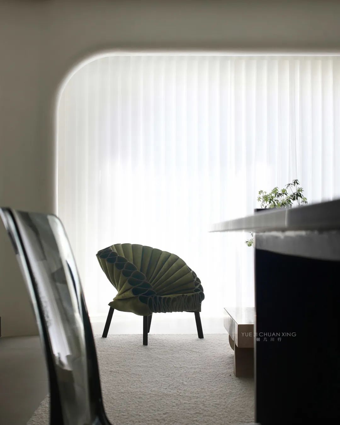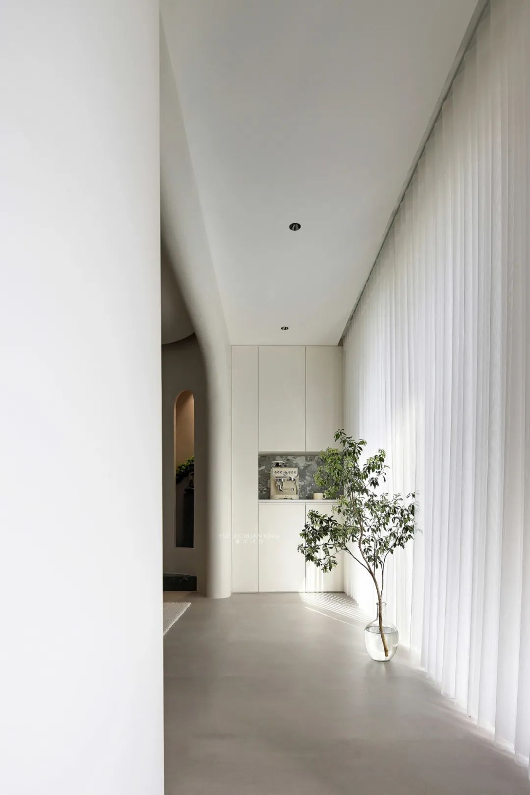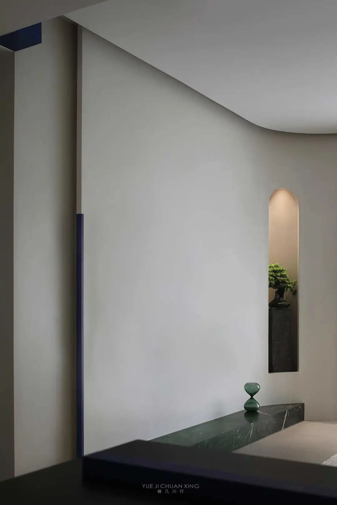 弧線經過肆意演變,融進墻壁、家具、燈飾等細節,恰好體現空間靈動的層次感,散發著輕軟與柔和的情調。