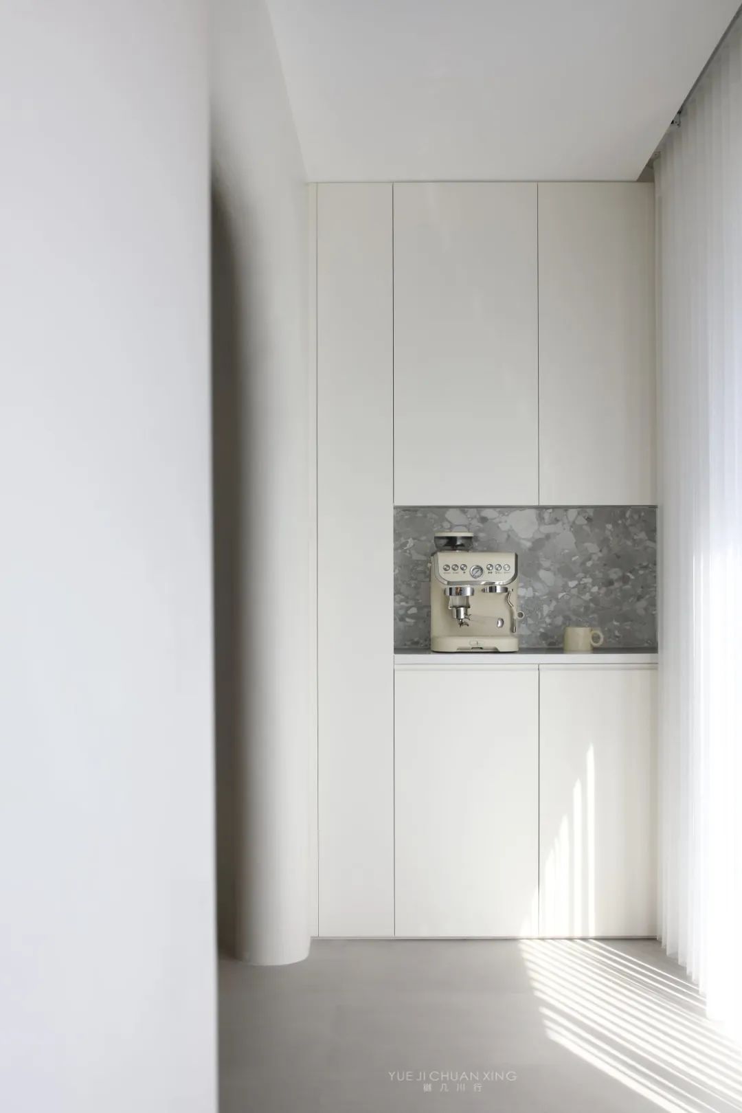 極簡設計,搭配低調內斂的微水泥瓷磚【亞特蘭大】,奠定空間干凈直爽、溫柔可親的氣質。