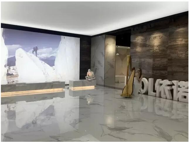 同時,依諾現在主打大規格產品,開放式的展廳設計讓空間更具通透感,大規格產品在其中展示時視覺效果更加流暢。