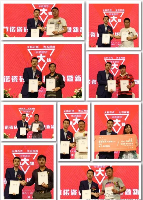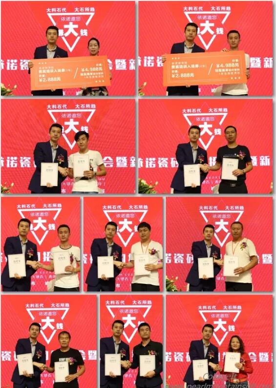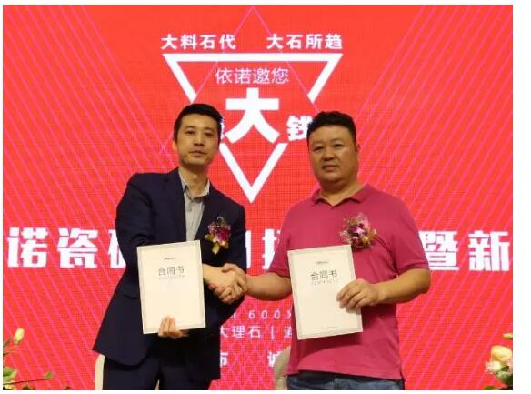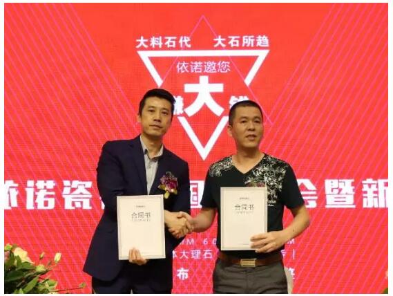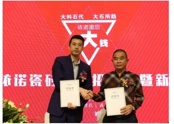 2016年10月19日,主題為“依諾邀您賺大錢”的2016依諾瓷磚招商會暨新品發布會在佛山隆重舉辦。據悉,今日現場新簽約客戶56名;陶博會2天,共新增簽約客戶89名,在陶瓷行業,單品牌簽約數量中名列前茅。