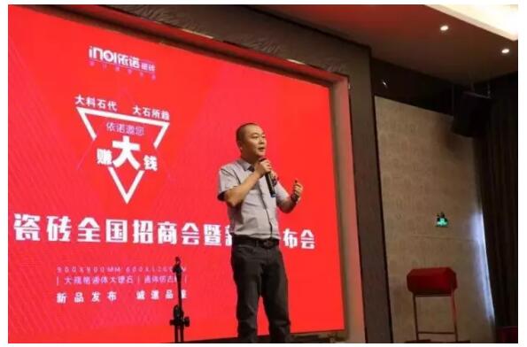 “全品類生產基地,產品無憂;高額專賣店補貼&扶持,建店無憂;高效的培訓體系,人員素質無憂;定向爆破營銷支持,賣貨無憂;8大配送倉儲中心,配送無憂;互聯網+360°引流平臺,推廣無憂…”依諾商學院副院長呂亮老師娓娓道來,從多個方面給在場的客戶呈現一個立體的實力派依諾,瞬間消除了大家的顧慮,增強了大家選擇依諾瓷磚的決心。