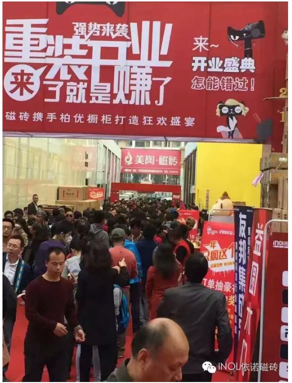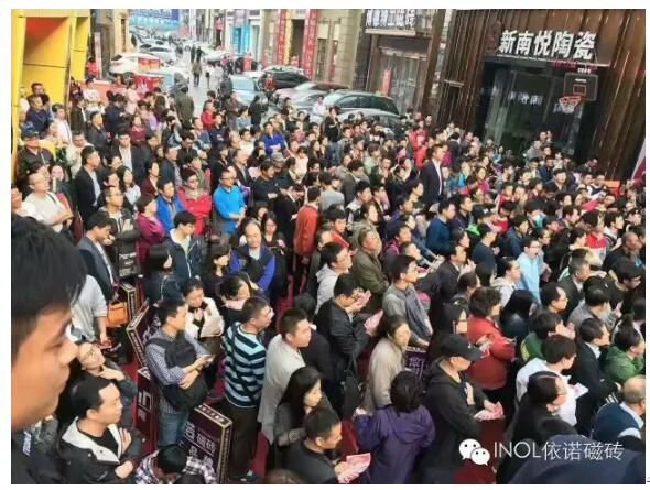 2016年10月17日,依諾瓷磚北京閩龍旗艦店重裝開業,這是一場充滿歡呼和雀躍的讓利盛宴。當日購磚人流將所在的閩龍陶瓷市場擠得水泄不通,再次印證依諾瓷磚領先的瓷磚品牌實力和瓷磚品牌魅力。