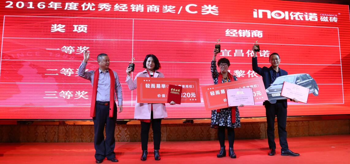 依諾瓷磚能有今天的成績和成長,離不開所有優秀的依諾人的共同努力,在”2016年優秀經銷商頒獎典禮“上,依諾瓷磚對這一年來取得優異成績的經銷商進行表彰。