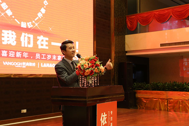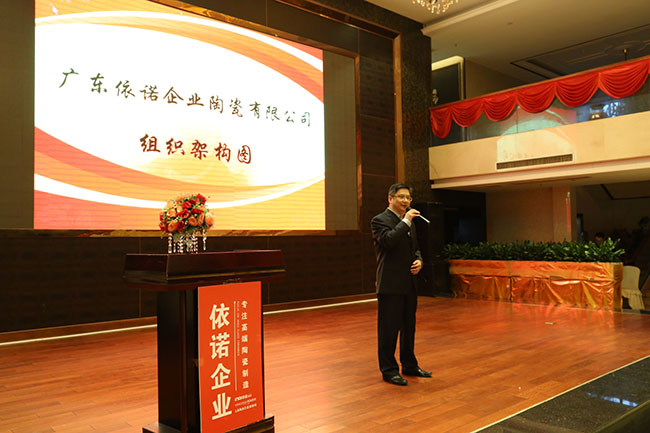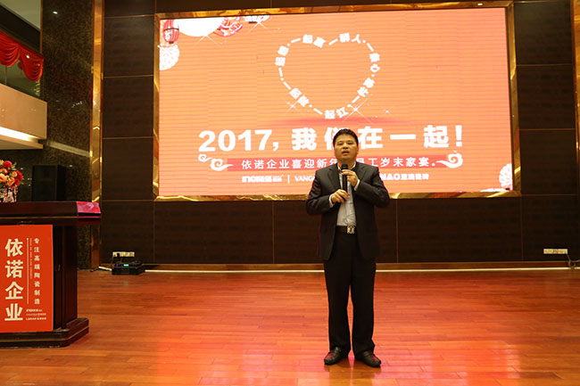 依諾企業(yè)營銷中心總經理田慶忠在新年致辭中分別回顧了依諾瓷磚、梵高瓷磚和藍澳瓷磚2016年的發(fā)展歷程,并展望2017年的規(guī)劃&目標。如果說2016年,依諾的發(fā)展概況為“大”規(guī)格、“大”動作、“大”反響、“大”變樣,那么2017年依諾將朝著“大”品牌、“大”布局、 “大”未來繼續(xù)升級;田總表示,依諾人要一起響應習大大的號召,2017,擼起袖子一起干。
