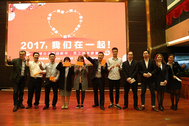歡聲笑語中,環(huán)顧四周依諾人的面龐,每一張面龐都寫滿了感恩與夢想,這是依諾企業(yè)與依諾人之間共通的氣質。依諾企業(yè)總經理郭萬龍先生在祝酒詞中懷著激動而感恩的心情向所有依諾人致謝,感謝過去18年,大家風雨同舟,并提出“2017年,我們在一起——一群人,一條心,一件事,一起扛,一起想,一起做,一起贏”的殷切期盼。