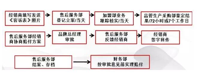 ⑥售后服務部根據(jù)鑒定情況,與經(jīng)銷商溝通協(xié)商達成處理初步意見,呈報公司領(lǐng)導審批;