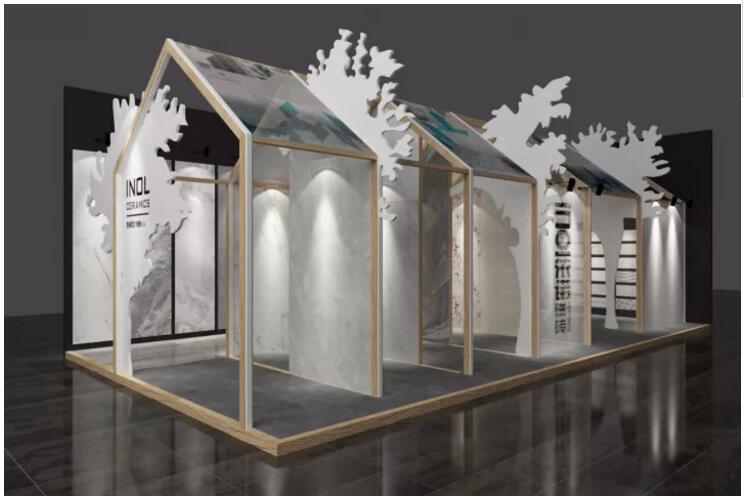 依諾瓷磚今年將攜900X1800MM大板和300X800MM釉面磚新品首次亮相廣州國際設計周,整個展位的設計以“自然· 家”為理念,五個空間分別對應