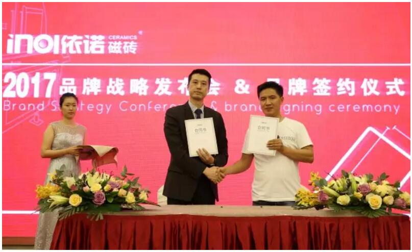 廣東瓷磚廠家-依諾瓷磚專賣店進駐河南周口。依諾品牌年輕、時尚、有魄力,產品設計緊跟國際潮流,營銷模式敢為人先,是陶瓷行業難得的一個瓷磚品牌,張總信心滿滿瓷磚加盟代理簽約依諾,并承諾在河南周口的紅星美凱龍經營依諾品牌,把依諾的產品帶到千家萬戶。