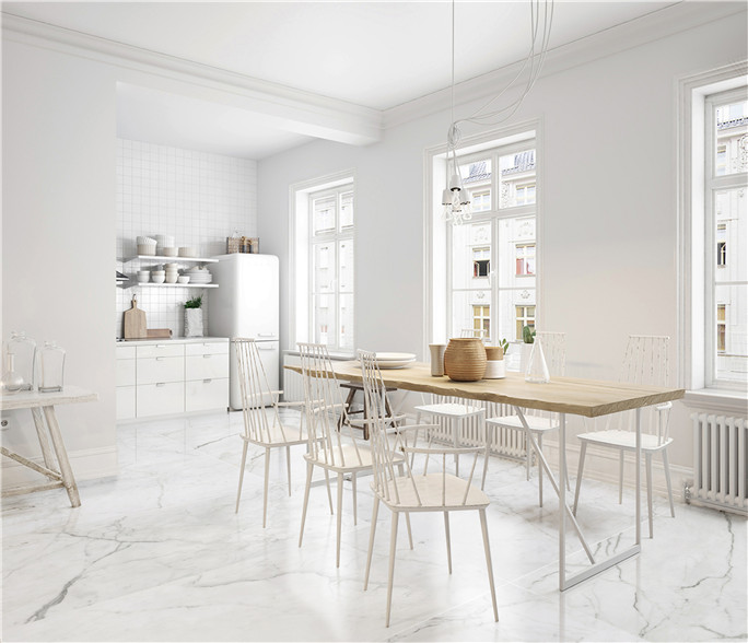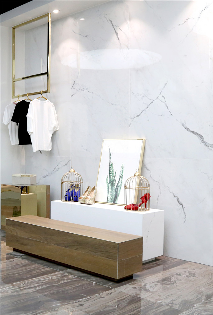意大利原創(chuàng)設(shè)計(jì),經(jīng)典的白色大理石元素,紋理留白充足,畫面更清爽開闊,大規(guī)格 + 一石多面,保證13㎡內(nèi)沒有紋理重復(fù),鋪貼效果更自然,適用于商業(yè)空間、別墅以及一般家裝的局部使用。